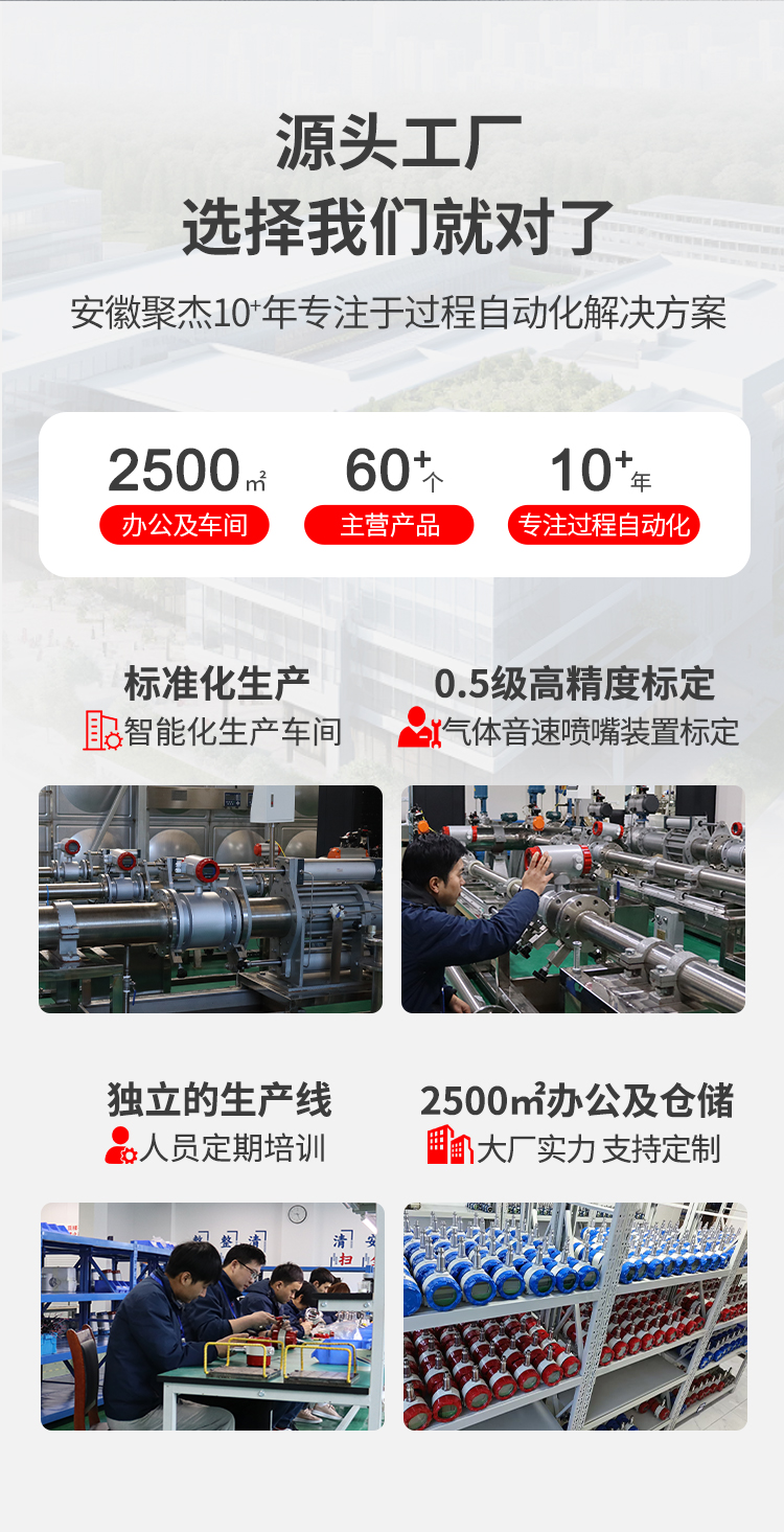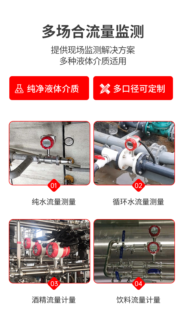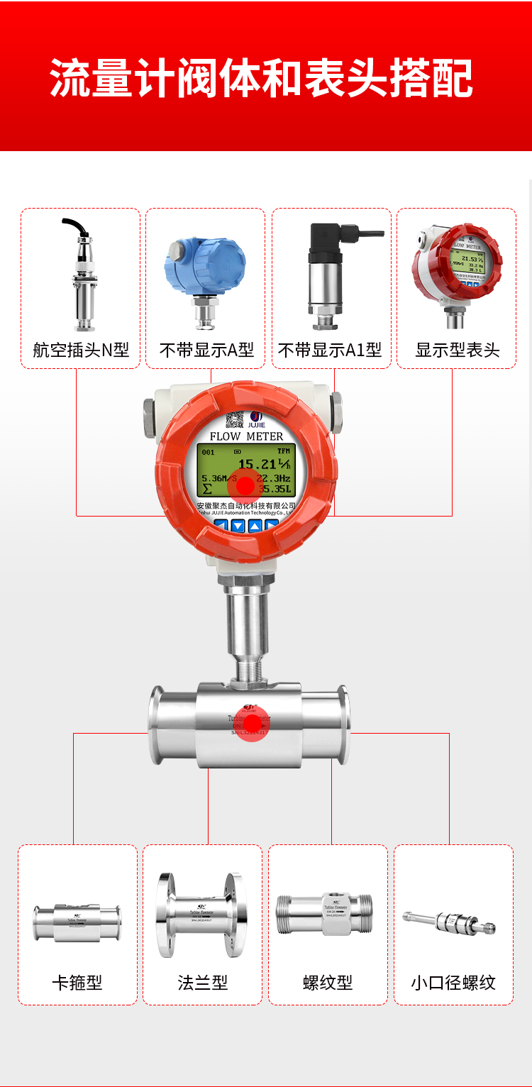 安徽聚杰液体涡轮流量计,可实时显示瞬时流量与累积流量,兼容纯水、自来水、酒精、食用油、牛奶、饮料等多种液体介质。支持脉冲信号、RS485、4-20mA、0-5V、0-10V 等多种输出信号,满足多样化工业控制与数据采集场景。